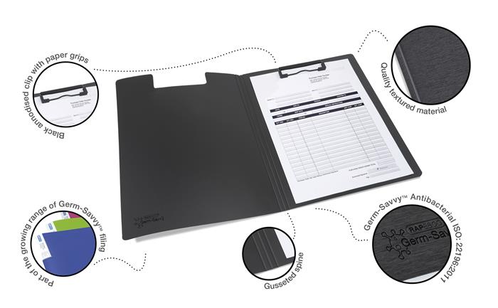 Podložka na písanie, antibakteriálna, A4, RAPESCO "Germ-Savvy®", čierna