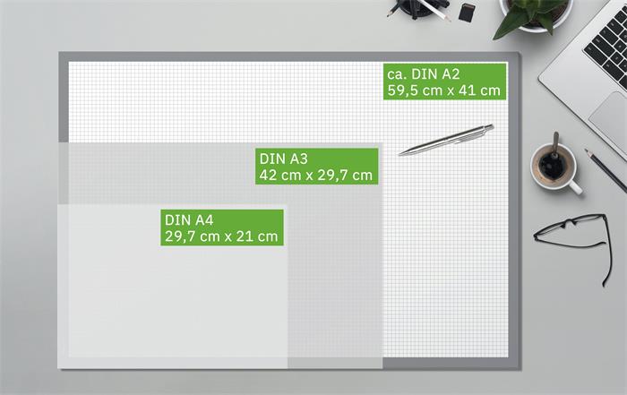 Vysokokvalitná písacia podložka na stôl vyrobená z papiera s gramážou 80 g/m² a pevnou zadnou stranou. - s 3-ročným kalendárom (2026/2027/2028) - s týždenným plánovačom - štvrojazyčná: angličtina, nemčina, francúzština a holandčina - veľkosť: približne A2 - vegánsky produkt - zaoblené rohy - 30 listov - certifikovaná FSC
