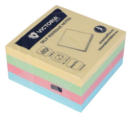 Samolepiaci bloček, 75x75 mm, 400 listov, VICTORIA OFFICE, pastelový
