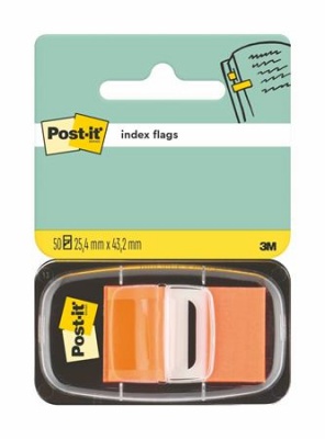 Záložka, plastová, 50 listov, 25x43 mm, 3M POSTIT, oranžová