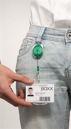 Držiak na identifikačné karty, výsuvný, s karabínou, DURABLE "STYLE", zelená
