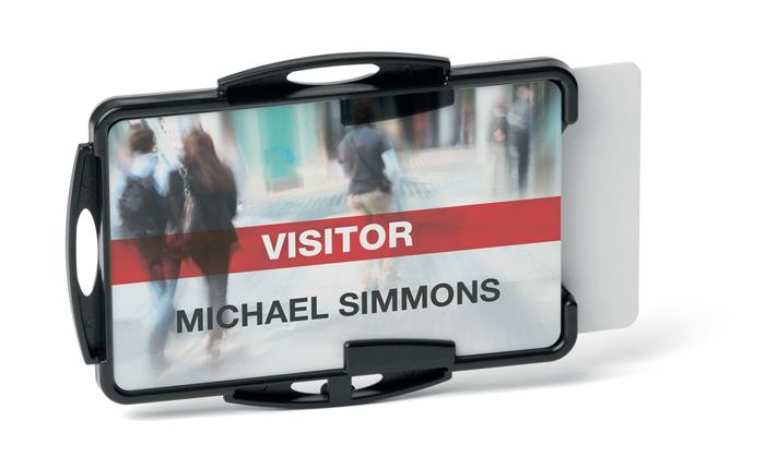 Hlavná stránkaKancelárske potrebyKancelárske doplnkyVisačky, menovkyVisačka, pre 2 karty, otvorená, DURABLE "ECO", čierna
