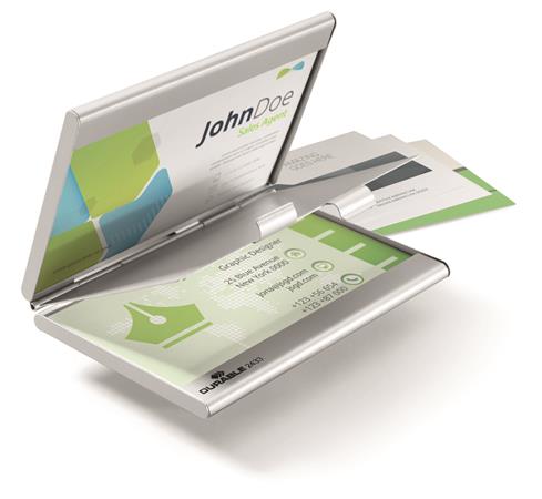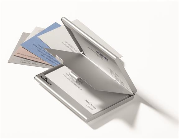 Puzdro na vizitky, kovové, 20-kusové, DURABLE "CARD BOX DUO", strieborná
