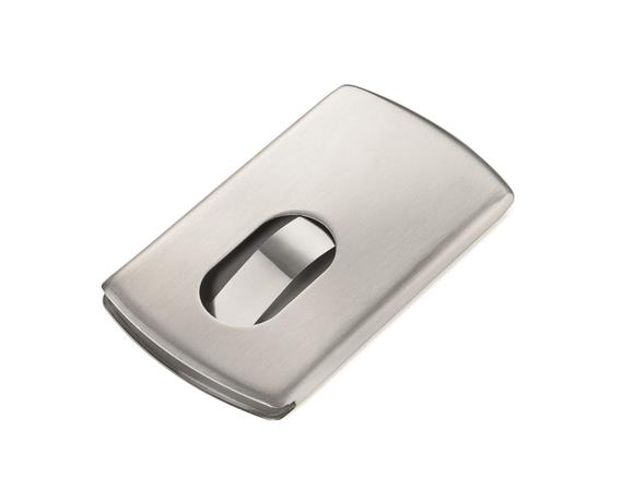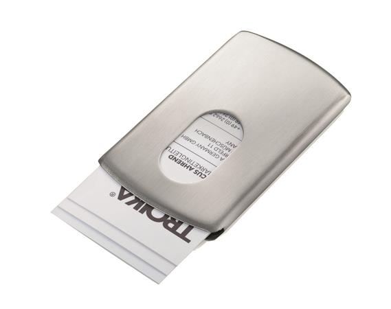 - materiál: nehrdzavejúca oceľ - strieborná farba - pružina drží karty, takže nevypadnú a dajú sa ľahko vysunúť vizitiek palcom Značka: TROIKA Výrobca: TROIKA Germany GmbH Adresa: Nisterfeld 11, 57629 Müschenbach, Germany Web: https://business.troika.de/ Email: service@troika.de