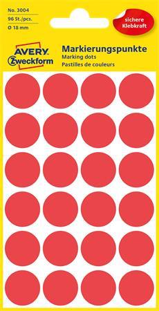 Etikety, okrúhle, priemer: 18 mm, AVERY ZWECKFORM, červené, 96 etikiet/bal