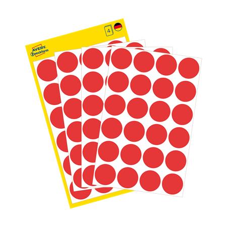 Etikety, okrúhle, priemer: 18 mm, odstrániteľné, AVERY ZWECKFORM, červené, 96 etikiet/bal