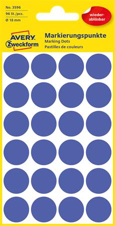 Etikety, okrúhle, priemer: 18 mm, odstrániteľné, AVERY ZWECKFORM, modré, 96 etikiet/bal