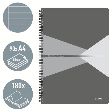 Blok, A4, linajkový, 90 listov, PP obálka, LEITZ "Office", sivá