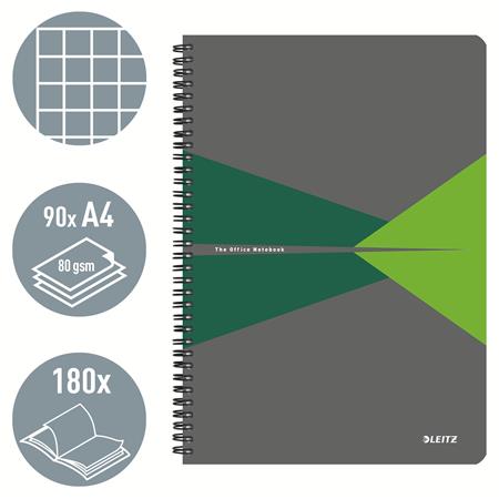 Blok, A4, štvorčekový, 90 listov, laminovaná kartónová obálka, LEITZ "Office", sivá-zelená