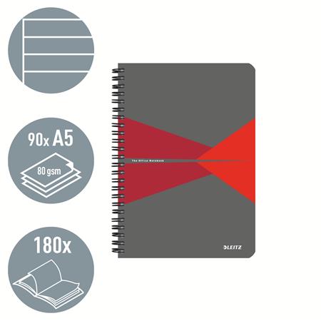 Blok, A5, linajkový, 90 listov, PP obálka, LEITZ "Office", sivá-červená