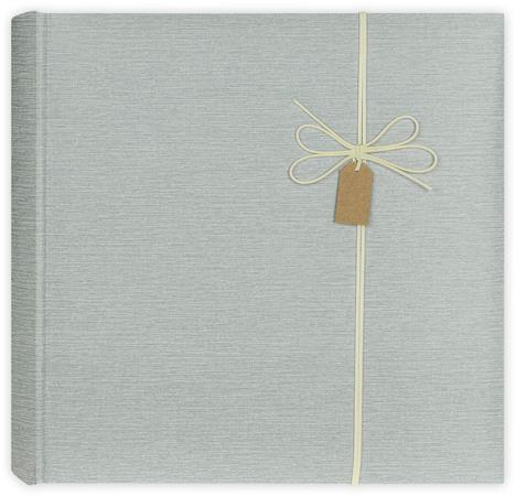 Memo album v knižnej väzbe, papierový obal, ozdobná mašľa. - na fotky s rozmerom 10x15 cm - 200 priehladných vreciek na fotky - 2 vrecká na strane - ležatý formát - biele listy - papierová obálka sivej farby - obálka s výrezom, za ktorý môžete vložiť vlastné foto - knižná väzba - die-cut dizajn