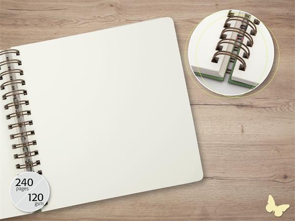 Špirálový zošit s tvrdou obálkou -matný motív - hnedá špirálová väzba -mikroperforované listy -240 čistých strán -120 g biely papier -vrecko na zadnej stane obalu -70% používaného materiálu s certifikátom FSC -vegánsky produkt