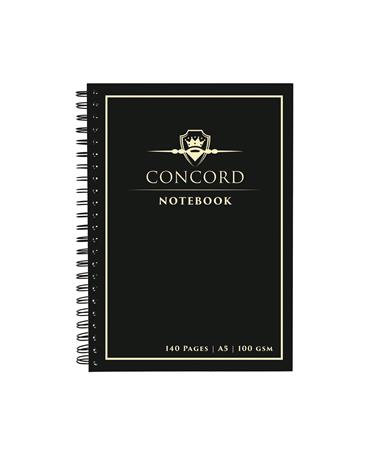 Špirálový zošit, A5, linajkový, 70 listov, CONCORD, čierny