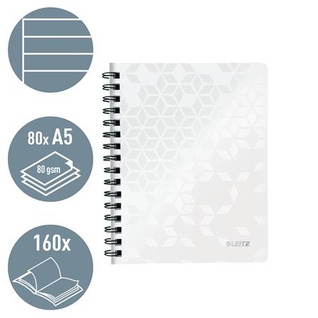 Špirálový zošit, A5, linajkový, 80 listov, LEITZ "Wow", biela