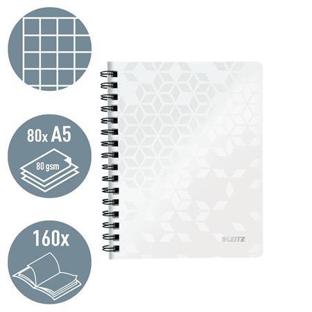 Špirálový zošit, A5, štvorčekový, 80 listov, LEITZ "Wow", biela
