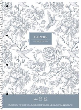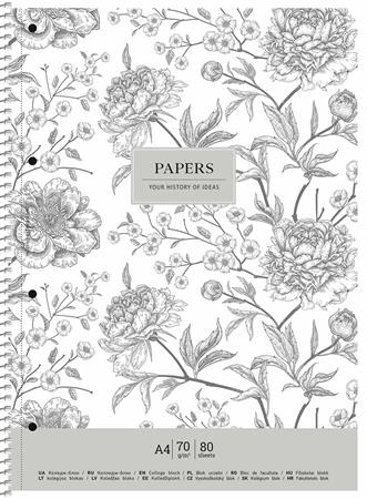 Špirálový zošit, štvorčekový, A4+, 80 listov, SHKOLYARYK "Vintage flowers", mix