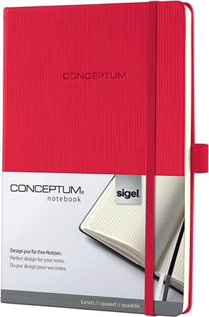 Zápisník, exkluzívny, A5, štvorčekový, 97 strán, tvrdá obálka, SIGEL "Conceptum", červená