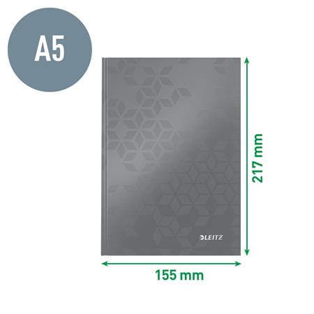 Záznamová kniha, A5, linajková, 80 listov, tvrdá obálka, LEITZ "Wow", ľadovo modrá