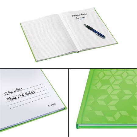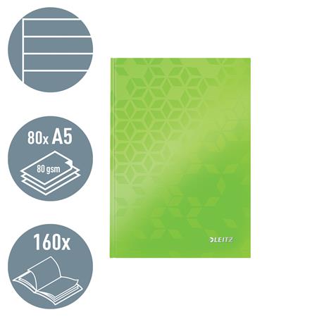 Záznamová kniha, A5, linajková, 80 listov, tvrdá obálka, LEITZ "Wow", zelená