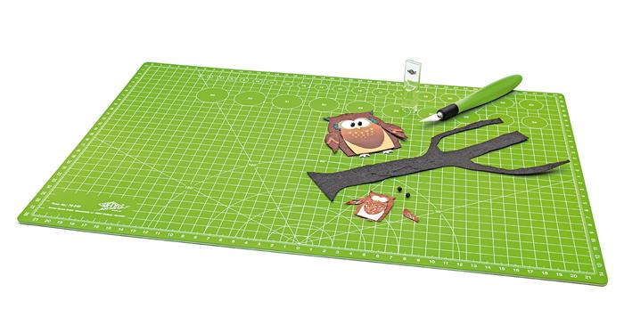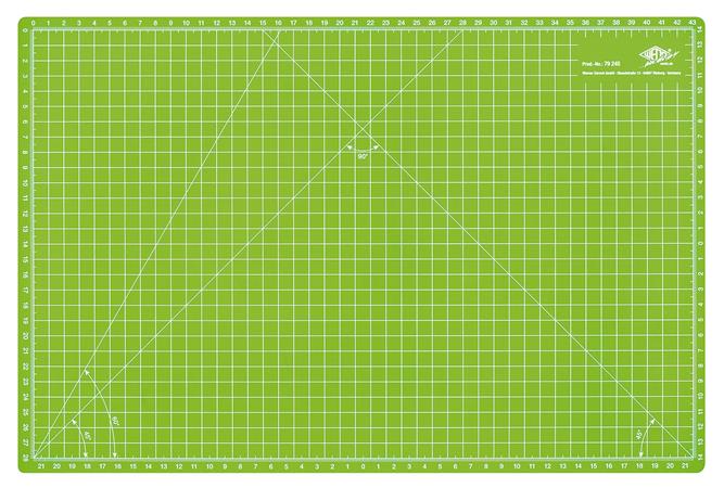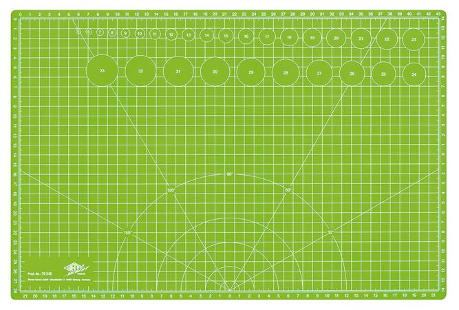 - robustná rezacia podložka je potlačená na oboch stranách mriežkou s rôznymi uhlami a kruhmi