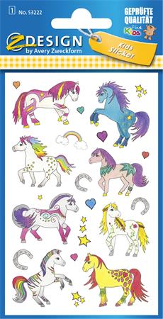 Kone na dúhe! Tieto pôvabné, farebné nálepky s koňmi sú ideálne na zdobenie listov, pamätníkov a zbierok básní.  Skvelé na darovanie, zdobenie, a tiež pre deti na hranie, zbieranie nálepiek a tvorivé aktivity. Samolepiace dekoratívne a kreatívne nálepky sú vyrobené z reliéfneho papiera.Nálepky Z-Design sú prirodzene špičkovej kvality, ktorú pravidelne kontrolujú a potvrdzujú nezávislé inštitúcie. Prajeme veľa zábavy pri zdobení!  Upozornenie: Nevhodné pre deti do 3 rokov, malé časti môžu byť prehltnuté. -rozmery: 76x120 mm