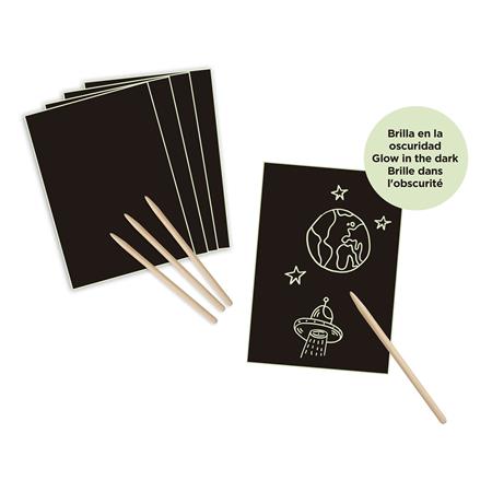 Popustite uzdu svojej fantázie s touto magickou, svietiacou súpravou na vyškrabávanie obrázkov. - možno vytvárať jedinečné vzory - pre deti je naozaj vzrušujúce, ako sa vzory v tme rozsvietia (predtým je potrebné naplniť hárky svetelným zdrojom) - výborne sa hodí na domáce a školské použitie - sada obsahuje 8 stieracích hárkov (A4 ) a obsahuje 4 drevené tyčky -odporúčaný vek: 4+