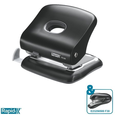 Dierovačka, 2 dierky, 30 listov, RAPID "FC30 Fashion", čierna