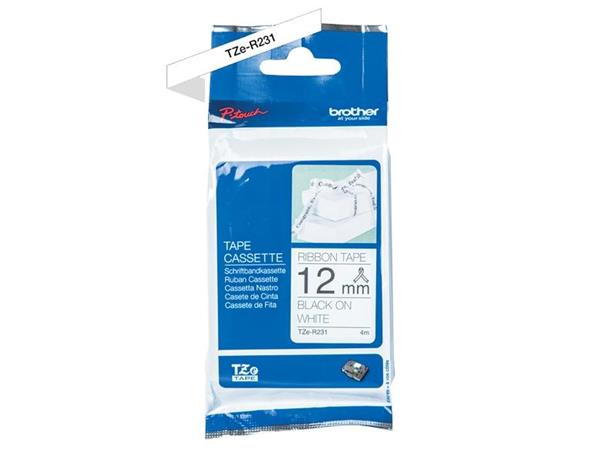 Páska do štítkovača, hodvábna, 12 mm x 4 m, BROTHER, "TZe-R231" , biela-čierna