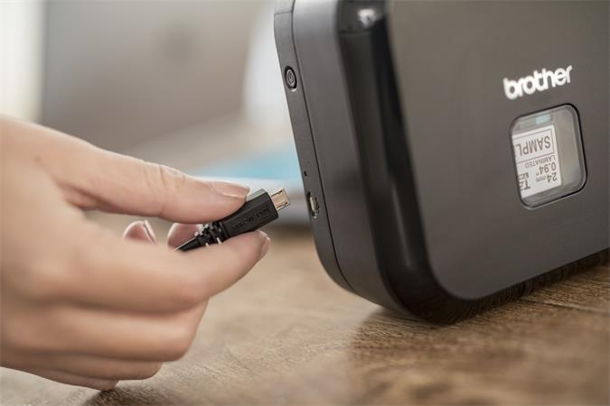 Malá tlačiareň štítkov bez klávesnice. Položíte ho do rohu a môžete naň pohodlne tlačiť z celého bytu pomocou telefónu cez Bluetooth pripojenie. K počítaču ho však môžete pripojiť aj pomocou USB kábla. Tlačte dizajnové štítky zo svojho iPhone! - technológia: priama termálna tlačiareň - šírka pásky: 3,5, 6, 9, 12, 18, 24 mm (TZe) - maximálna šírka tlače: 18 mm - maximálna dĺžka tlače: 999 mm - minimálna dĺžka tlače pri automatickom rezaní: 25 mm - normálne rozlíšenie tlače: 180×180 dpi -vysoké rozlíšenie tlače: 180×360 dpi -rýchlosť tlače: max. 20 mm/s -vstavaná automatická rezačka pásky -životnosť rezačky: cca. 20 000 rezov -napájanie: batéria PA-BT-005 -rozmery (Š×H×V): 128 × 67 × 128 mm -hmotnosť netto: 580 g -hmotnosť (s batériou): cca. 640 g -plná rýchlosť USB 2.0 -bluetooth 2.1+EDR Class2 -záruka: 2+1 rok (podlieha registrácii) -príslušenstvo: Kazeta s páskou, šírka 24 mm, čierny text na bielom pozadí, kábel USB 4 m Batéria (PA-BT-005 )