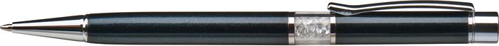 Guľôčkové pero, Crystals from SWAROVSKI®, čierne, s bielymi krištáľmi v strede tela, 14cm