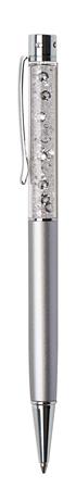 Guľôčkové pero, s bielymi krištáľmi, 14 cm, Crystals from SWAROVSKI®, strieborná