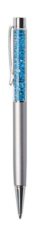 Guľôčkové pero, strieborné, vrch plnené aqua modrým SWAROVSKI® krištáľom, 14 cm, ART CRYSTELLA®