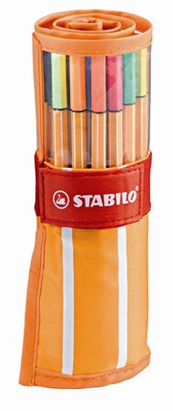 Liner, sada, 0,4 mm, rolovacie puzdro, neónové farby, STABILO "Point 88", 30 rôznych farieb