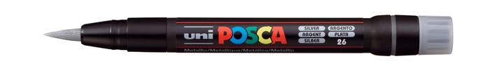 Popisovač v tvare štetca, UNI "Posca PCF-350", strieborná
