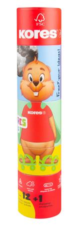 Farebné ceruzky, sada, trojhranné, jumbo, 1 strúhadlo, KORES "KOLORES Twist & Turn", 12 rôznych farieb