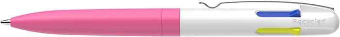 Guľôčkové pero, 0,5 mm, stláčací mechanizmus, 4 farby, SCHNEIDER "Take 4 Neon", ružové-biele