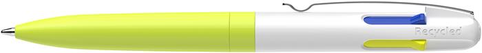 Guľôčkové pero, 0,5 mm, stláčací mechanizmus, 4 farby, SCHNEIDER "Take 4 Neon", žlté-biele