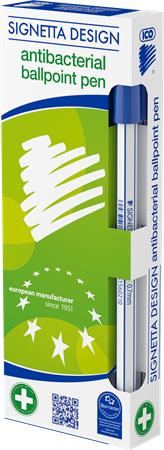 Guľôčkové pero, 0,7 mm, s vrchnákom, antibakteriálne, ICO "Signetta", modrá