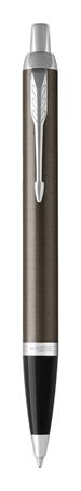 Guľôčkové pero, stláčací mechanizmus, strieborný klip, tmavohnedá farba tela, PARKER, "Royal IM", modré