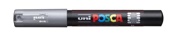 Dekoračný popisovač, 0,7-1,0 mm, UNI "Posca PC-1M", strieborný