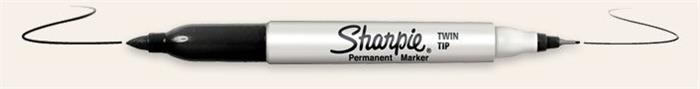 Permanentný popisovač, kužeľový hrot, 2 konce, SHARPIE "Twin Tip", čierny