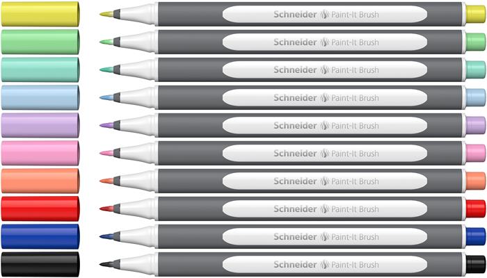 Popisovač v tvare štetca, sada, s ohybným hrotom, SCHNEIDER "Paint-It 070", 10 rôznych farieb