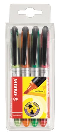 Zvýrazňovač, sada, 1-4 mm, STABILO "Navigator", 4 rôzne farby