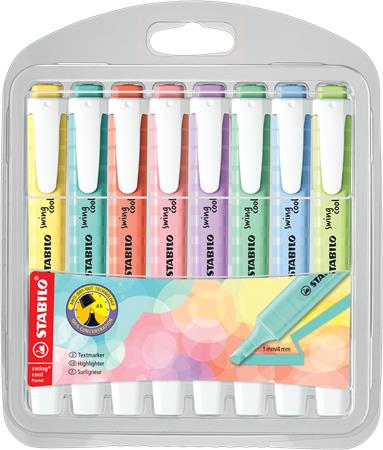 Zvýrazňovač, sada, 1-4 mm, STABILO "Swing Cool Pastel", 8 rôznych farieb