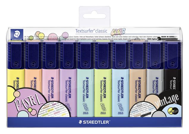 Zvýrazňovač, sada, 1-5 mm, STAEDTLER, "Textsurfer Classic Pastel 364 C", 10 rôznych farieb