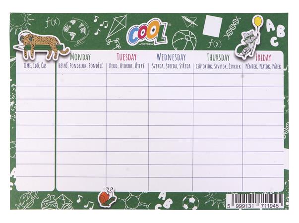 Hlavná stránkaKancelárske potrebyŠkolské pomôckyIné školské pomôckyRozvrh hodín, A5, obojstranný, COOL BY VICTORIA