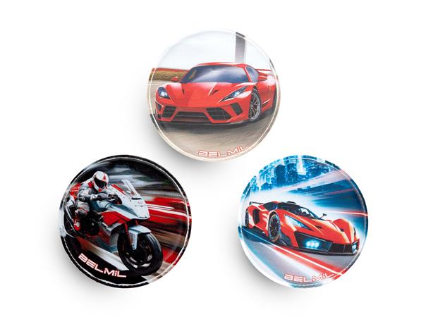 Sada 3 emblémov - priemer: 6 cm - materiál: TPU - zapínanie: na suchý zips - k taškám a peračníkom Classy Plus