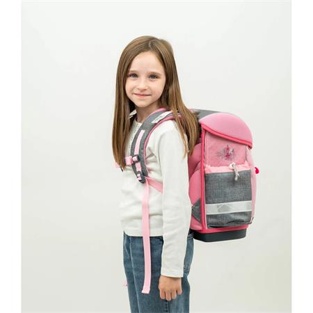 Ergonomický dizajn: -Ergonomicky tvarovaná školská taška s priedušným, polstrovaným chrbtovým systémom, ktorý zabezpečuje maximálne pohodlie a pomáha predchádzať bolestiam chrbta. Ergonomickú vhodnosť potvrdzuje aj certifikát nemeckého inštitútu AGR. Nastaviteľné popruhy: -odnímateľný a nastaviteľný hrudný popruh, nastaviteľné ramenné popruhy pre dokonalé prispôsobenie -stabilné a pohodlné nosenie -polstrované ramenné popruhy v tvare S, prispôsobiteľné postave dieťaťa, zabezpečujú optimálne usadenie a komfort pri nosení. Premyslený vnútorný priestor: -tri priestranné vnútorné priehradky vhodné aj na zošity a knihy formátu A4, vďaka čomu majú všetky školské potreby svoje miesto – dve bočné vrecká na dáždnik alebo 0,7 l fľašu na vodu. Praktické bočné vrecká:Dve bočné vrecká sú ideálne na uloženie dáždnika alebo 0,7 l fľaše na vodu a umožňujú rýchly a jednoduchý prístup. Jednoducho ovládateľná pracka: -ľahko otvárateľná kovová pracka s reflexným prvkom, ktorý zvyšuje viditeľnosť a bezpečnosť dieťaťa v cestnej premávke. Superľahká konštrukcia: -hmotnosť tašky je len 930–990 g, takže zbytočne nezaťažuje ramená ani chrbát dieťaťa. Európska výroba: Produkt je navrhnutý a vyrábaný rodinnou firmou v Európe už od roku 1965, čo zaručuje jeho vysokú kvalitu a spoľahlivosť. Ideálna voľba pre rodičov, ktorí kladú dôraz na ergonomickú, bezpečnú a ľahkú školskú tašku pre svoje dieťa.