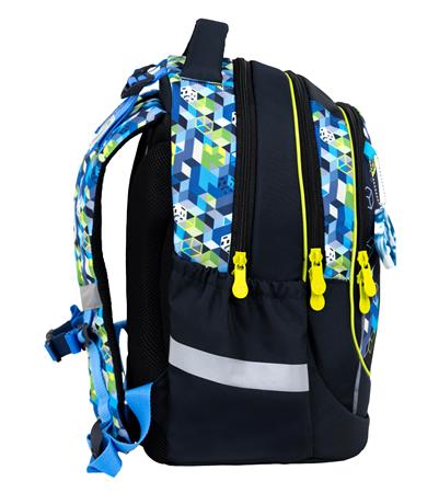 Školské tašky pre kreativitu, hravosť a jedinečnosť -2 vnútorné + 2 bočné priehradky (na dáždnik + 0,7 litrová fľaša) -predné vrecko na držiak pera -ergonomický polstrovaný chrbát -nastaviteľný hrudný popruh pre optimálne rozloženie hmotnosti -reflexné prvky na všetkých stranách -materiál: vodeodolný polyester -zapínanie na zips -rozmer: 40x20x30 cm -váha: 0,730-0,765 kg -odporúčané pre 7-11 ročné deti -odporúčané od výšky 110 cm -2 roky záruka