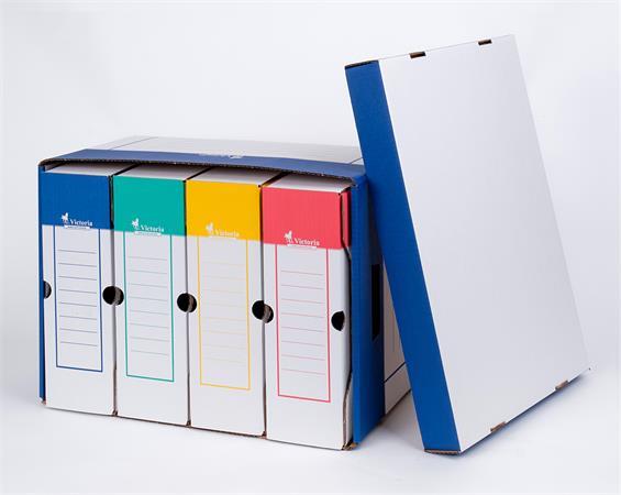 na uloženie 4 ks 10 cm alebo 5 ks 8 cm VICTORIA archívnych boxov možnosť popisovania rýchle a hospodárne archivovanie v nezloženom stave, jednoducho skladateľný (samostatné veko) max.nosnosť: 20 kg - vonkajší rozmer: 325x460x270mm
